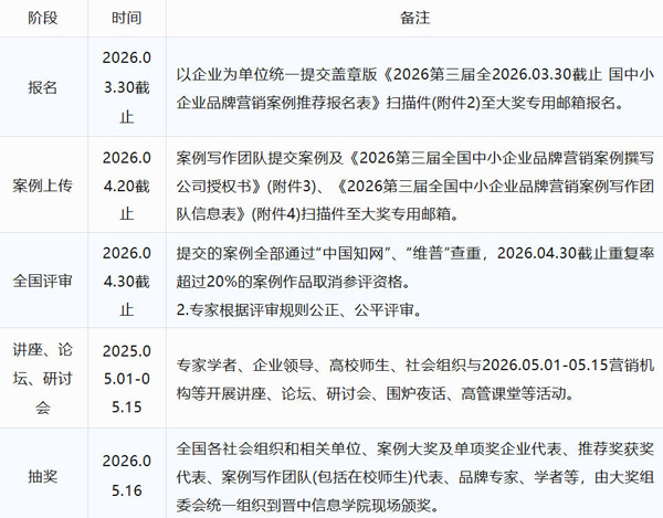 大奖报名和更多信息,请关注重庆移通学院官网https://www.cqytxy.edu.cn(通知公告)的《2026第三届全国中小企业品牌营销案例征集公益大奖方案》。
