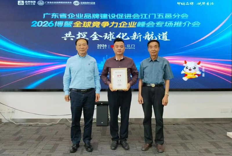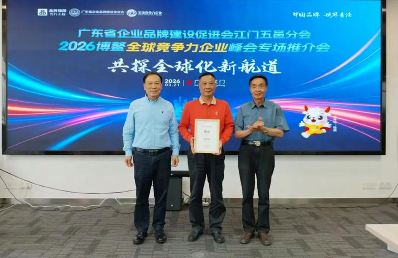 3月21日,由品牌强国先行工程组委会指导,广东省企业品牌建设促进会五邑分会承办的2026博鳌全球竞争力企业峰会五邑分会专场推介会在江门市隆重举行,广东瑞荣泵业、粤特电力新能源、长华集团、南洋船舶、滨崎食品等江门优秀品牌企业代表参加会议。
